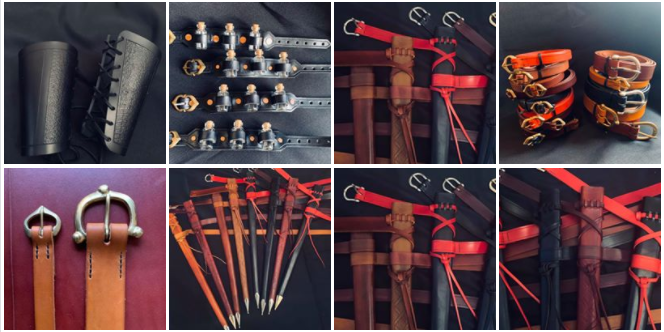 Handmade historical leatherwork for re-enactors of the Middle Ages, as well as Steampunk