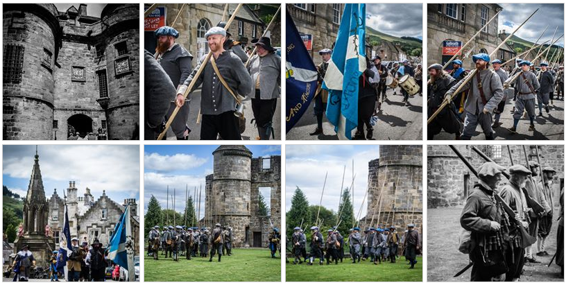 The Earl Of Loudoun’s Regiment of Foote are a Lowland Scots infantry regiment based on the actual recorded regiment which was raised in Glasgow and which saw extensive military service on the smokey battlefields of the 1640s. The Regiment meet at “musters” which can vary in size from small “living histories” and small drill displays up to full-blown “majors” or battles. All arms of military life are employed in the society; regiments of infantry armed with pike and musket, squadrons of horse (cavalry) and batteries of ordnance (cannon). The regiment prides itself on its skill at arms on the battlefield, its historic realism both in combat and lifestyle, its individual member’s knowledge of the period and above all its friendly family atmosphere.