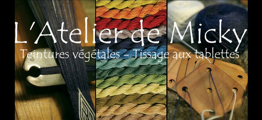 Historic plant dyes and tablet weavings. +33 6 62 59 25 60 contact@atelierdemicky.com https://www.facebook.com/atelierdemicky/ https://www.atelierdemicky.com/fr/